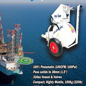 The purpose built, SV50-Rig Vac is a super compact, highly mobile, IECEx Zone 0 certified vacuum unit designed specifically for maintaining a safe and clean rig floor. Versatile enough for the shaker and mud pits working environment, the SV50 Rig Vac is supplied complete with Vac-Head floor attachment.